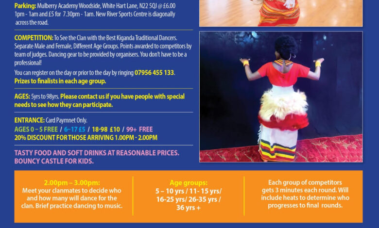 +256 702 239 337: Hosted at the New River Sports Centre in Wood Green, London, the competition is expected to attract hundreds of participants and spectators eager to celebrate Buganda’s rich cultural legacy through traditional dance.