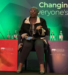 Pauline Nantongo- Executive Director at ECOTRUST Speaking during a panel discussion on “What are Bio credits ? With examples from Africa and elsewhere at the Business of Conservation Conference in Nairobi, Kenya.