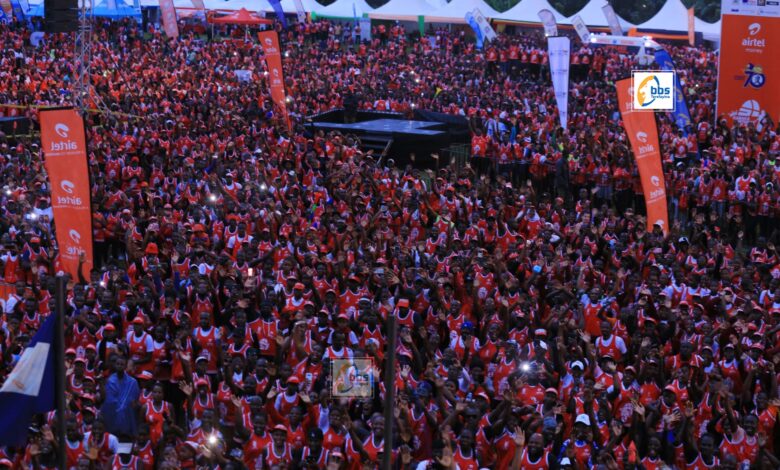 Newankubadde nga ekibiina kyakulembera ekya NUP, kyaagula emijoozi egyokuddukiramu gya bukadde 20, naye ye Robert Kyagulanyi Ssentamu omukulembeze waakyo teyasobodde kubaawo mu Lubiri e Mmengo nga Ssaabasajja asimbula enkuyanja y’abantu abagumidde enkuba eyabadde efuddemba nebeetaba mu misinde egitegekebwa buli mwaka okujjaguza amazaalibwa g’omuntanda.