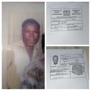 “Details of Ephraim Ssebunya’s Kenyan identification used to settle in Nairobi, where he lived until his death in 1995.