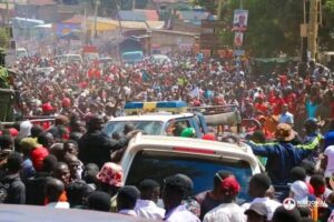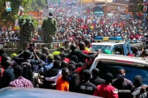 NUP leader Robert Kyagulanyi Ssentamu, whom Matembe sought to meet ahead of his nomination for presidency, is burried in a sea of post nomination rally at Nateete