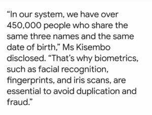 “That’s why biometrics, such as facial recognition, fingerprints, and iris scans, are essential to avoid duplication and fraud,” she explained.