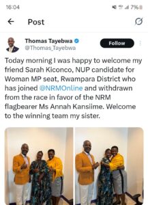 According to the NUP leader, Kiconco was subsequently taken to meet Deputy Speaker of Parliament Thomas Tayebwa, whom he accused of personally coordinating efforts to persuade opposition candidates to abandon their campaigns. Kyagulanyi alleged that Tayebwa has taken it upon himself to approach NUP candidates across the country, offering money and other inducements in exchange for withdrawal from the race.