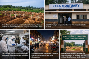 Kampala, Uganda — A sobering police annual health report has revealed a silent humanitarian crisis unfolding in the heart of Uganda’s capital: 509 people died in Kampala in 2025 and were buried without anyone coming forward to claim their remains.