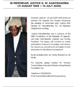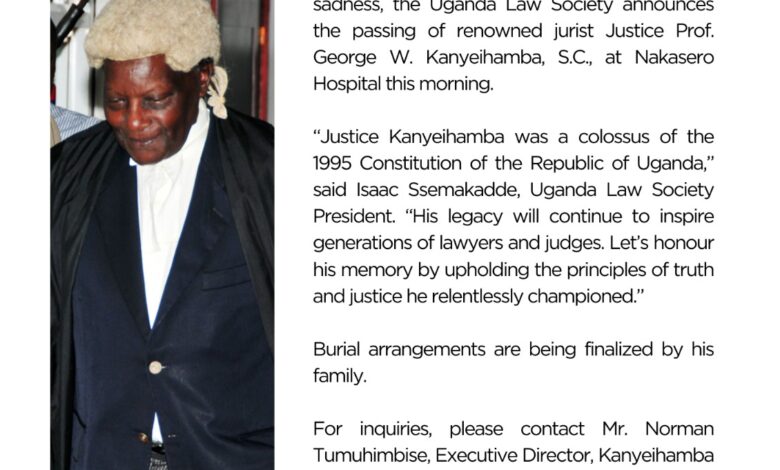 Though he has departed, Prof. Kanyeihamba’s legacy remains a towering presence in Uganda’s legal and democratic institutions. His fearlessness, intellectual rigour, and unwavering commitment to justice shall inspire future generations.