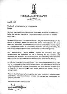 “Prof. Kanyeihamba’s legacy extends beyond his academic and legal achievements. He dedicated his life to speaking for the voiceless and promoting the principles of constitutionalism. His unwavering commitment to peace, unity, and justice earned him a special place in the hearts of many.”