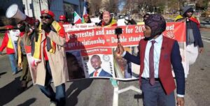 The Ugandan ambassador to the US warned protesters to desist from carrying out demonstrations, saying that this portrays a bad image for Uganda.