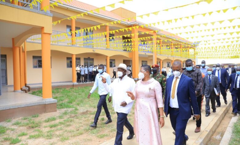 Museveni and Among majestically walking to the inauguration of Among’s privately owned hospital which is believed to have been constructed using the ill gotten funds through corruption.