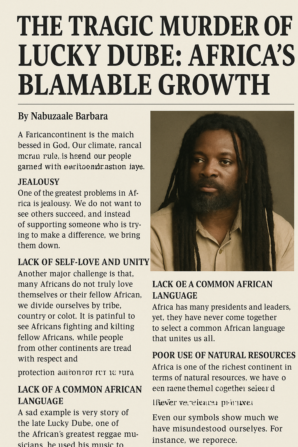 A tragic example of this injustice is the death of Africa’s reggae legend Lucky Dube, a man who used his voice to preach love, unity, and peace. He was shot and killed by fellow Africans—by the very people he sought to uplift through his music.How can a continent prosper when it destroys its own shining stars?