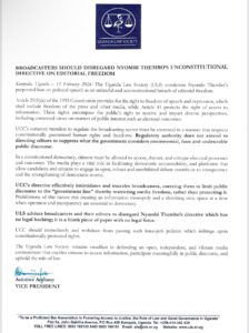 Particularly striking is ULS’ rejection of what it describes as an unlawful directive attributed to Nyombi Thembo. The Society’s position is unambiguous — editorial judgment, it argues, cannot be subordinated to regulatory preference.